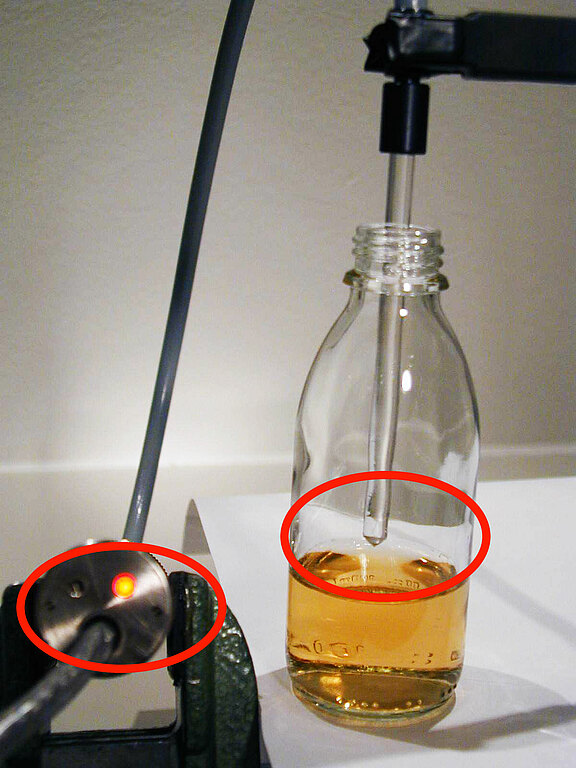 Füllstandsmessung auf transparente Flüssigkeiten, mit Lichtwellenleiter auch durch Glas