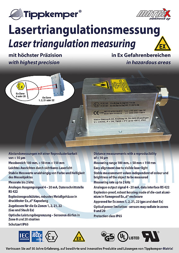 - zugelassen für den Betrieb in den Ex Zonen 1, 2, 21, 22 (Gas und Staub Ex)
